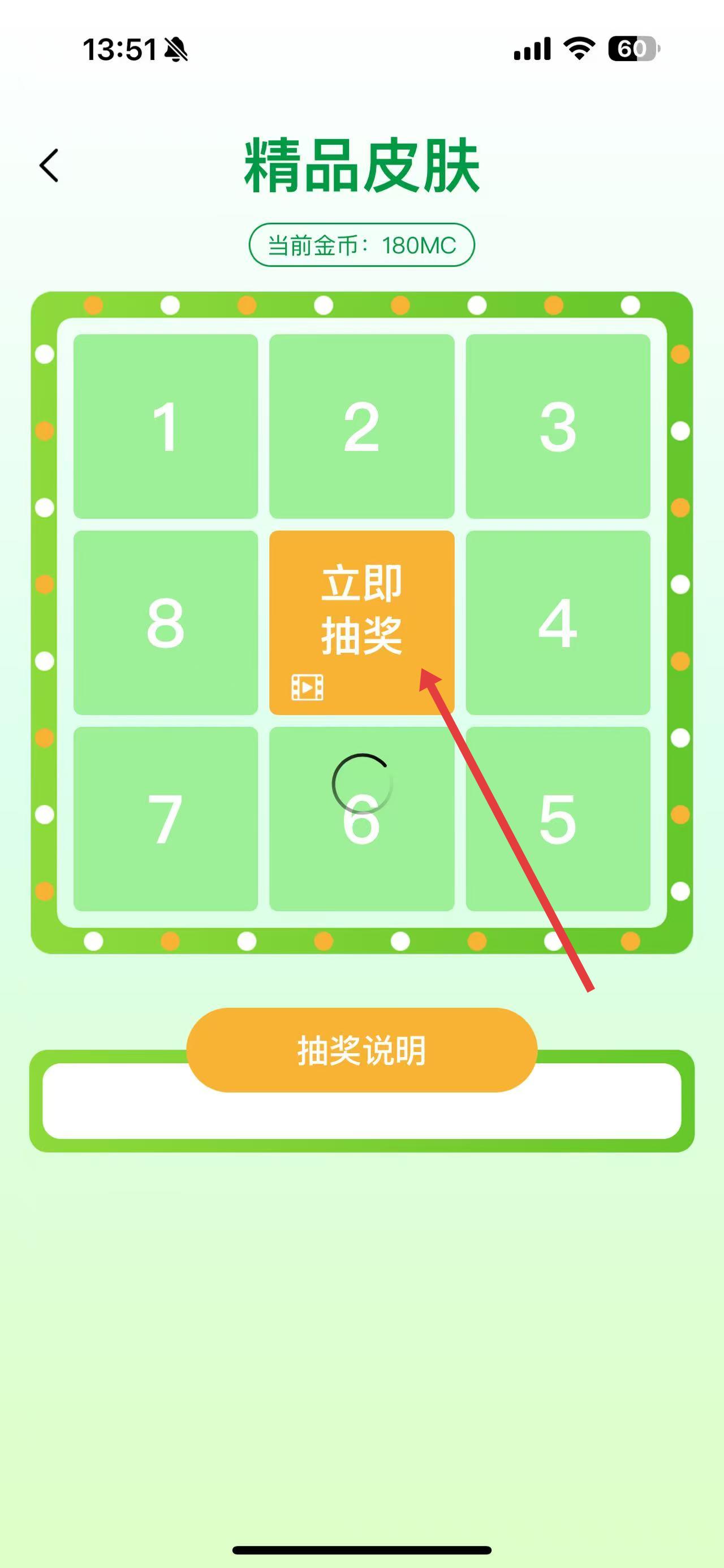 4、在精品皮膚抽獎界面里,點擊立即抽獎按鈕,就有機(jī)會抽到皮膚。