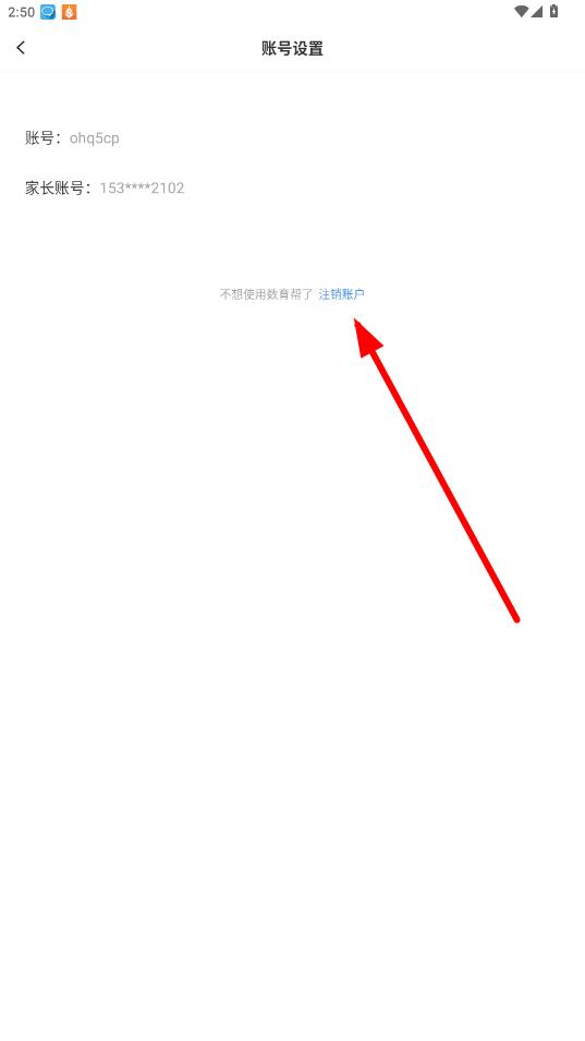 3、進入賬號設(shè)置頁面,找到并點擊不想使用數(shù)育幫注銷賬戶文字。