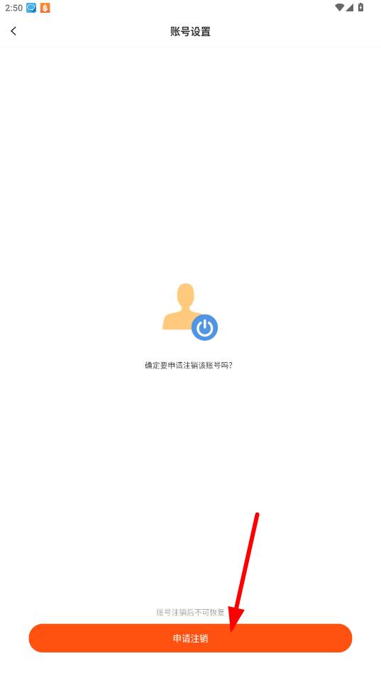 4、在新頁面中,點擊底部橙色的申請注銷按鈕,完成賬號注銷。
