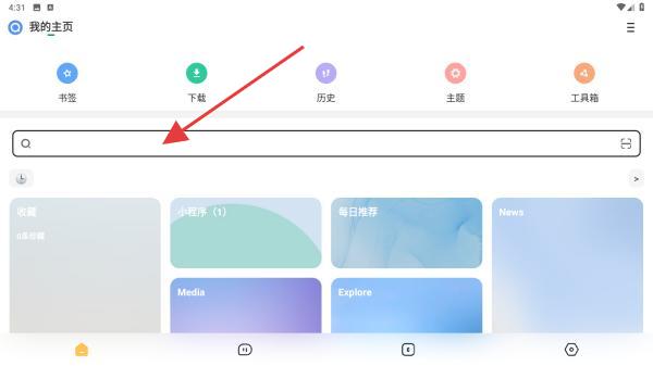 1、進(jìn)入個(gè)人頁(yè)面,在頁(yè)面頂部找到長(zhǎng)條狀搜索欄,點(diǎn)擊搜索欄,喚起輸入鍵盤(pán)。