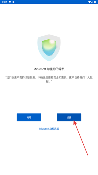 1、打開微軟身份驗(yàn)證碼APP,進(jìn)入時(shí)會(huì)彈出隱私政策,點(diǎn)擊接受的按鈕。