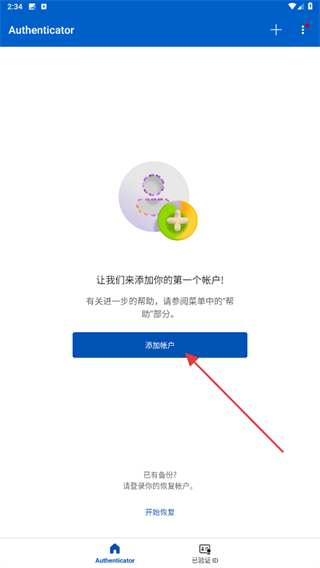 2、進(jìn)入到首頁內(nèi),點(diǎn)擊添加賬戶的功能按鈕。