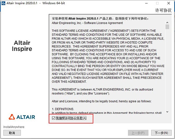 2、運行AltairInspire2020.0.1_win64.exe,選擇簡體中文開始安裝;