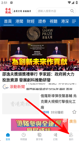 1、在香港商報(bào)的首頁,我們需要點(diǎn)擊底部我的,進(jìn)入個(gè)人的頁面。