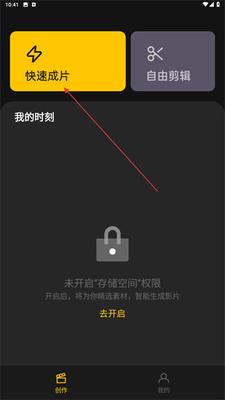 1、啟動即錄剪輯的APP,進入時點擊快速成片的按鈕。