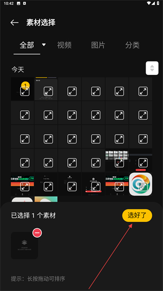 2、進入素材選擇的界面內(nèi),選擇后點擊選好了的按鈕。