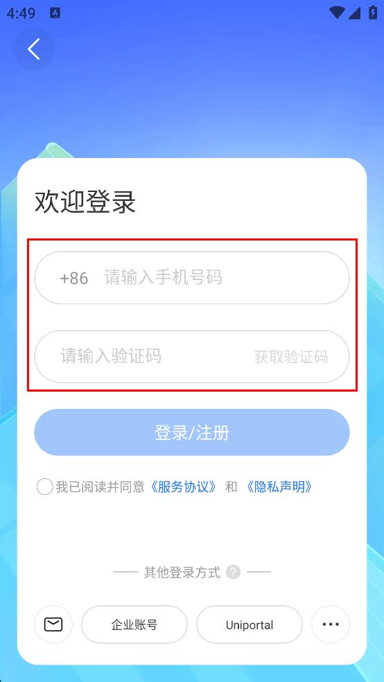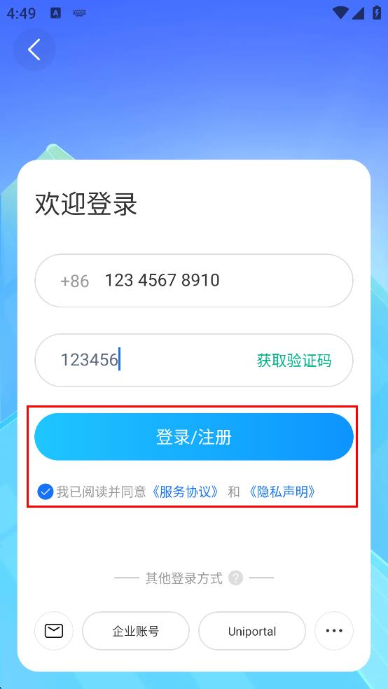 4、完成信息填寫和協(xié)議勾選后,點擊“登錄/注冊”,完成登錄操作。