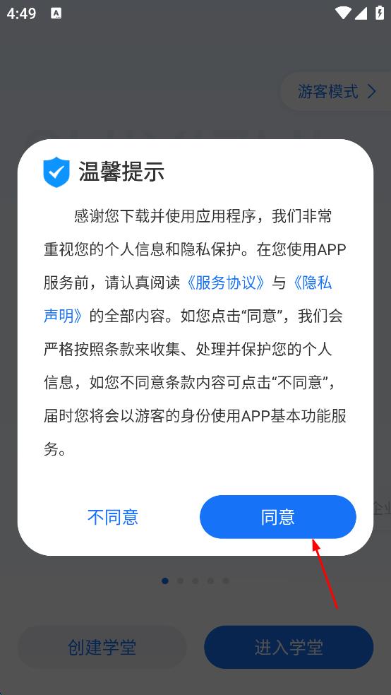 1、打開,彈出溫馨提示,點擊同意,進入相關(guān)界面。