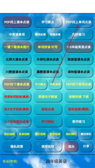 1、打開app,找到并點擊PEP四上單詞點讀按鈕。