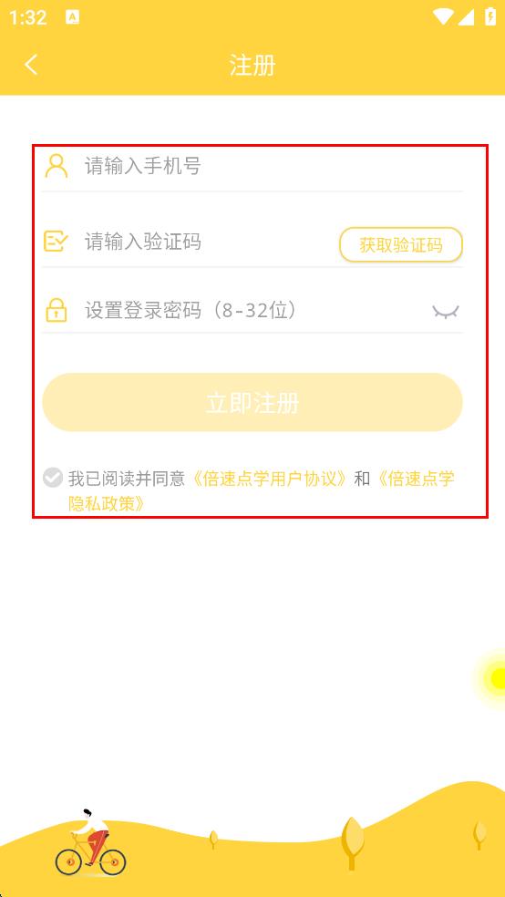 4、輸入手機(jī)號(hào),點(diǎn)擊“獲取驗(yàn)證碼”,待收到驗(yàn)證碼后輸入到對(duì)應(yīng)框中,然后設(shè)置密碼,勾選同意協(xié)議,點(diǎn)擊“立即注冊(cè)”按鈕,完成賬號(hào)注冊(cè)。
