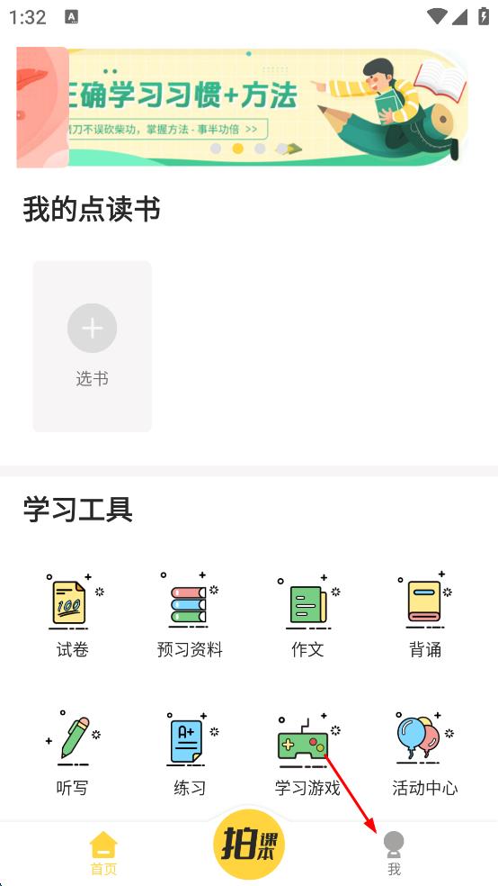 1、打開倍速點(diǎn)學(xué)APP,進(jìn)入首頁后,點(diǎn)擊頁面右下角的“我”選項(xiàng),進(jìn)入個(gè)人頁面。