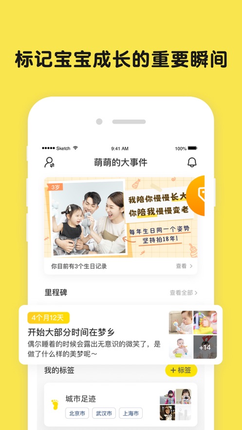 支持視頻、照片、日記等形式輕松記錄寶寶生活點(diǎn)滴,自動(dòng)歸集整理成時(shí)間軸。