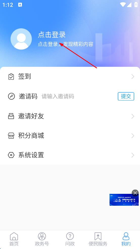 2、在個(gè)人頁(yè)面,點(diǎn)擊“點(diǎn)擊登錄”選項(xiàng),進(jìn)入用戶登錄頁(yè)面。
