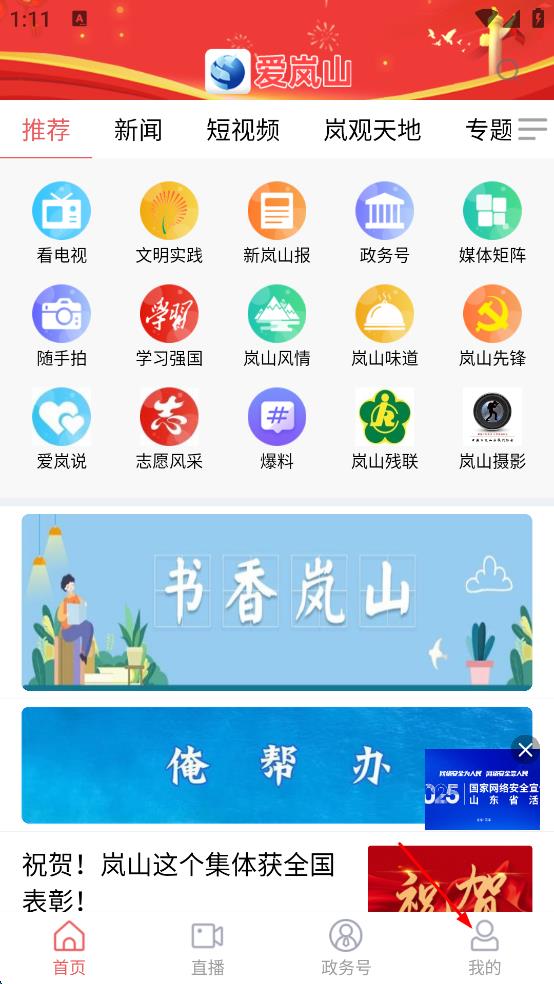 1、打開愛(ài)嵐山APP,進(jìn)入首頁(yè)后,點(diǎn)擊頁(yè)面右下角的“我的”選項(xiàng),進(jìn)入個(gè)人頁(yè)面。