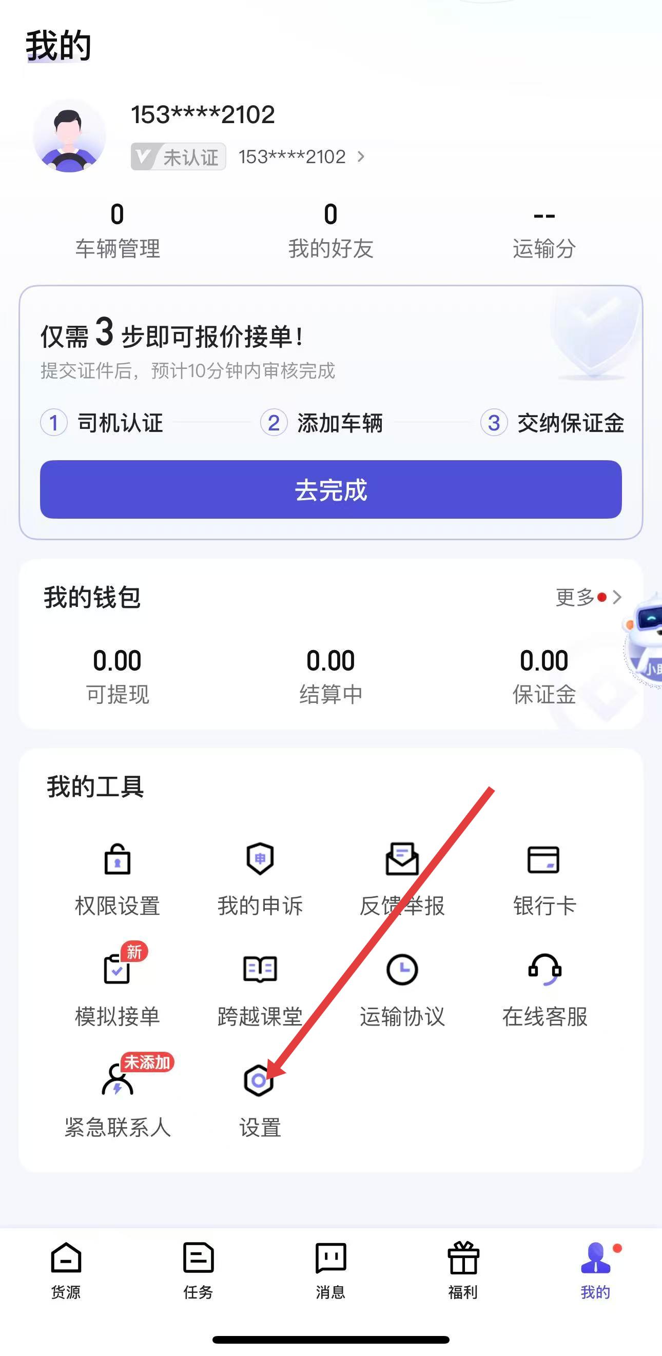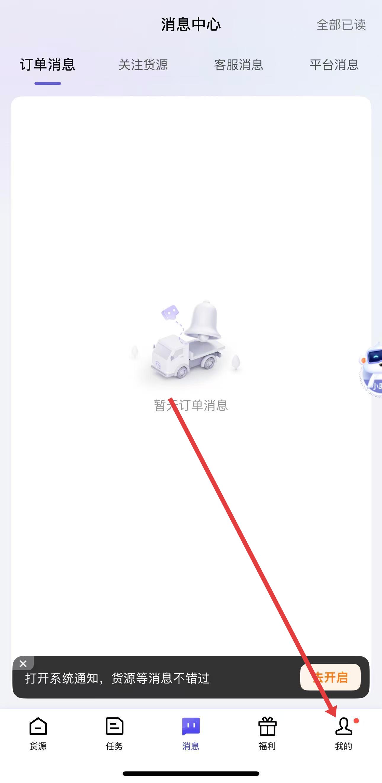 1、打開跨越運(yùn)力app,點(diǎn)擊底部導(dǎo)航欄最右側(cè)我的選項(xiàng),進(jìn)入個(gè)人頁面。