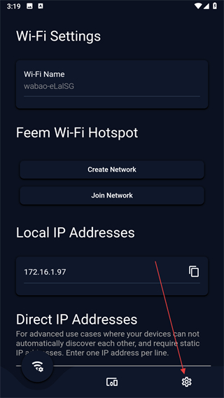 1、打開Feem應(yīng)用,點擊右下角的設(shè)置圖標。