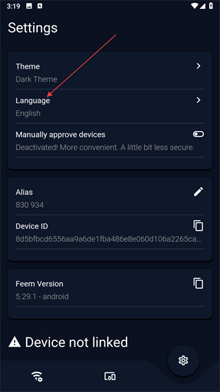 4、設(shè)置完成后,即可將Feem應(yīng)用的語言切換為中文。