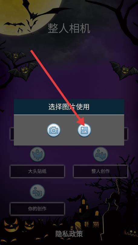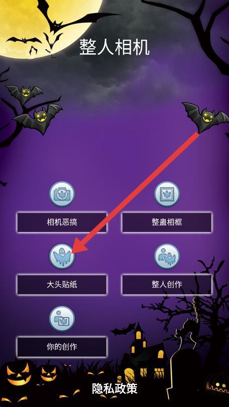 1、打開整人相機app,找到并點擊大頭貼紙按鈕。