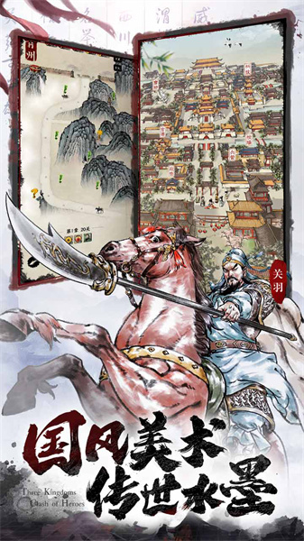 2、恢弘壯闊的三國戰(zhàn)場采用國風(fēng)水墨描繪,給人們視覺上無比震撼的視覺效果!