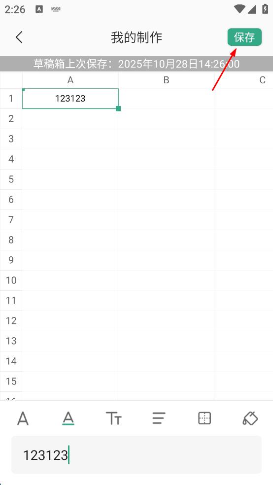 4、輸入完成后,點擊右上角“保存”按鈕,即可完成表格的新建與保存操作。