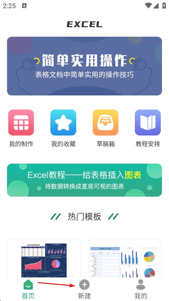 1、打開Excel學習APP,點擊底部“新建”選項。