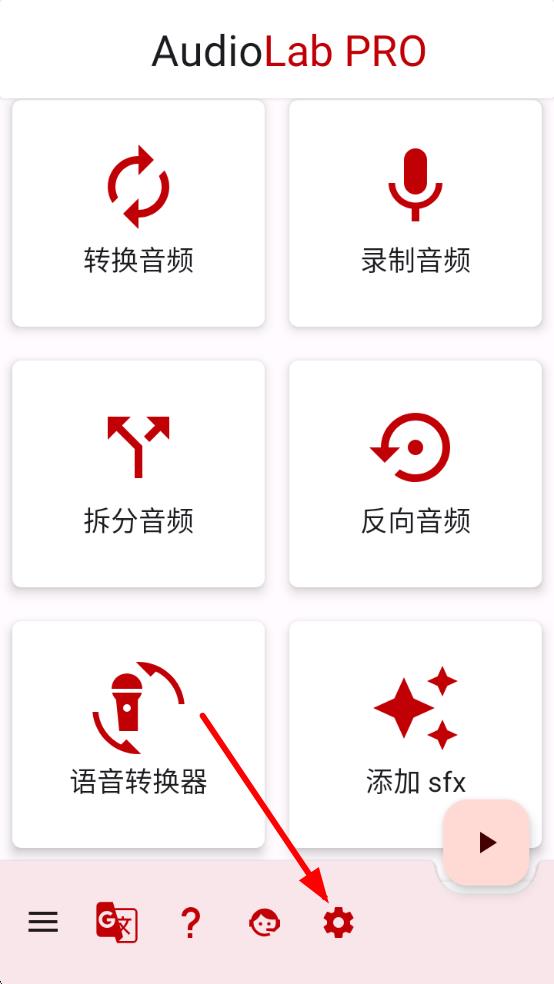 1、打開AudioLabPRO,點擊界面下方的齒輪圖標,進入設(shè)置界面。
