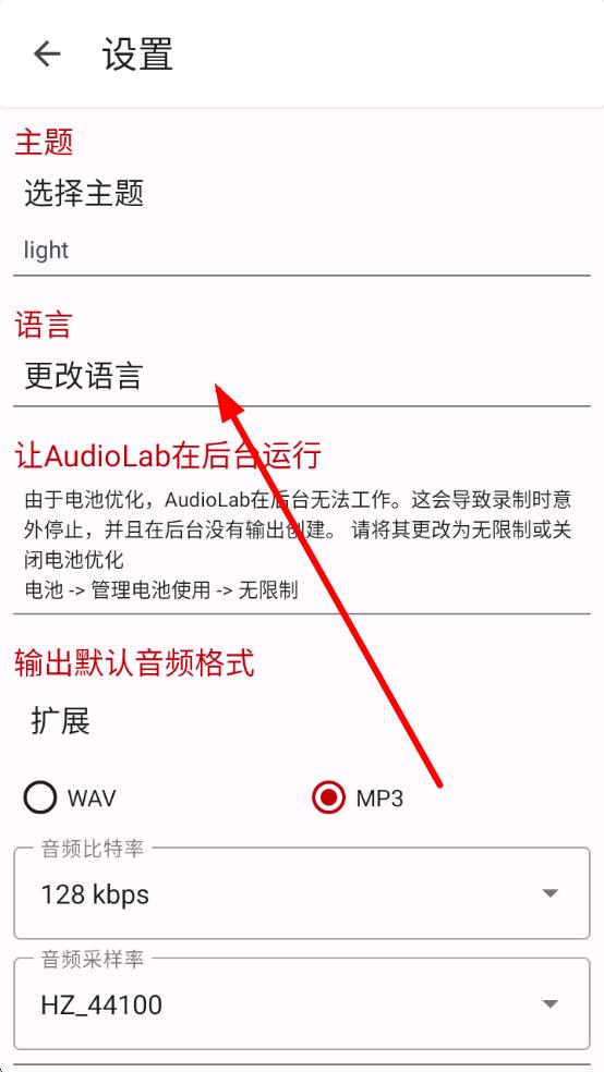 2、在設(shè)置界面中,找到并點擊更改語言選項,進入語言選擇頁面。