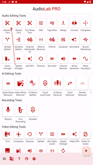 1、啟動audiolab的APP,進入首頁點擊上方剪輯的功能圖標。