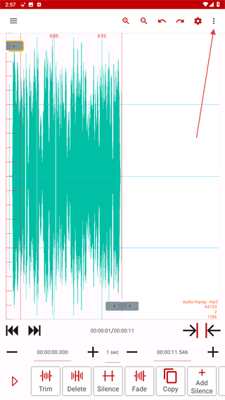 3、進入音頻剪輯的頁面內(nèi),剪輯后點擊右上角三個點的圖標。