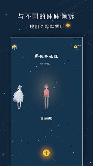 解憂的娃娃是一款能夠讓你傾述煩惱的app,在這里,所有人的形象都是一個娃娃,你可以向任何娃娃傾述你的煩勞,其他娃娃會給你安慰,幫你分擔(dān)你的煩惱,軟件中你不會知道你對面是誰,所有人的隱私都得到了最好的隱藏,你可以盡情的宣泄你的煩惱,你還在等什么呢,快點來下載體驗吧!