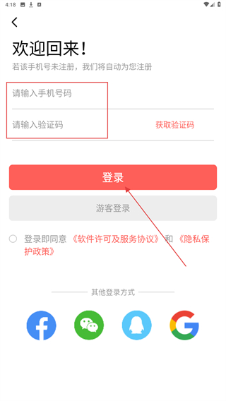 3、輸入手機(jī)號碼、驗證碼后,點擊登錄即可。