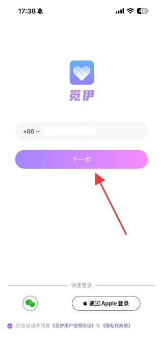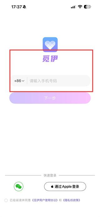 1、打開覓伊APP,輸入手機(jī)號(hào)碼,點(diǎn)擊一步。