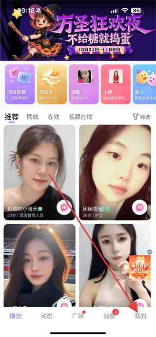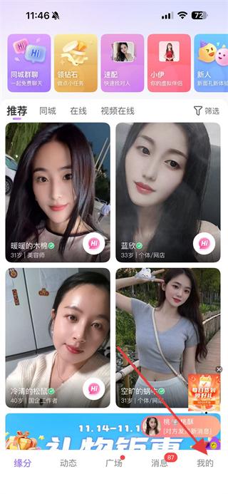 1、打開覓伊APP,點(diǎn)擊右下角我的,進(jìn)入個(gè)人頁面。