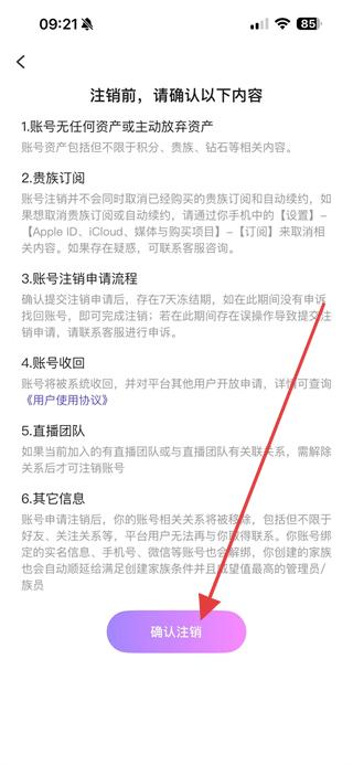 5、進(jìn)入注銷確認(rèn)頁面后點(diǎn)擊確認(rèn)注銷,即可完成覓伊APP賬號(hào)的注銷操作。