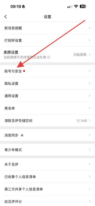 3、在設(shè)置頁面點(diǎn)擊賬號(hào)與安全,進(jìn)入賬號(hào)與安全頁面。