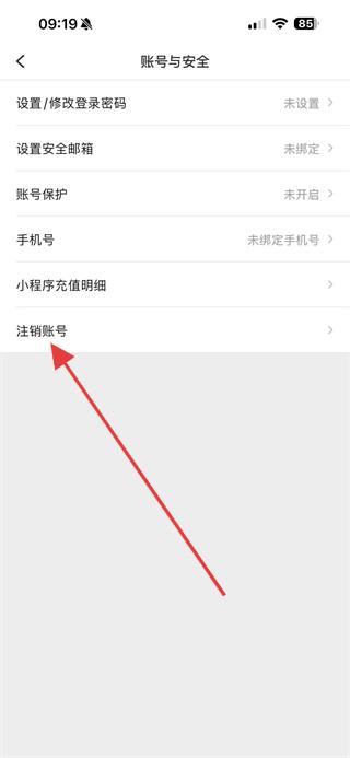 4、在賬號(hào)與安全頁面點(diǎn)擊注銷賬號(hào)。