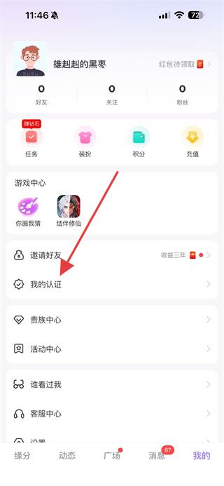 2、在個(gè)人頁面中,點(diǎn)擊我的認(rèn)證選項(xiàng),進(jìn)入我的認(rèn)證頁面。