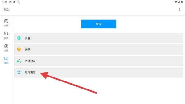 2、在我的頁面中,找到并點擊軟件更新的選項,列表中通常在關(guān)于功能下方。