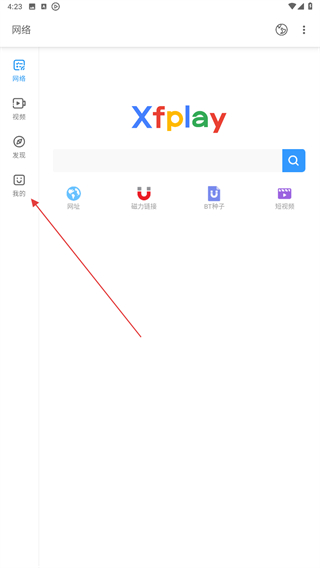 1、打開影音先鋒的應(yīng)用,進(jìn)入首頁點擊左側(cè)我的圖標(biāo)。