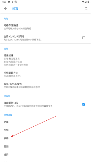 3、進(jìn)入設(shè)置的界面內(nèi),在附加設(shè)置下點擊字幕的按鈕。