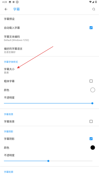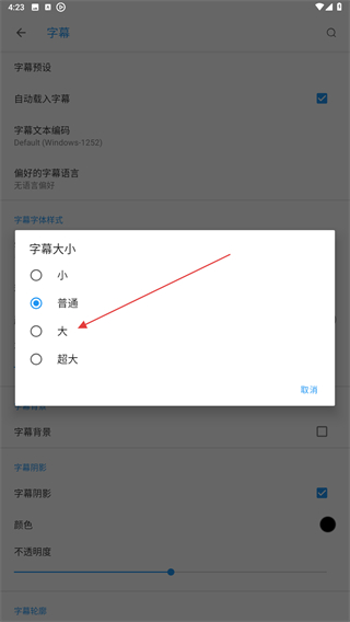 4、進(jìn)入字幕的界面內(nèi),點擊字幕大小的功能按鈕。