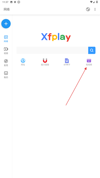 1、打開影音先鋒APP,進(jìn)入時點擊短視頻的按鈕。