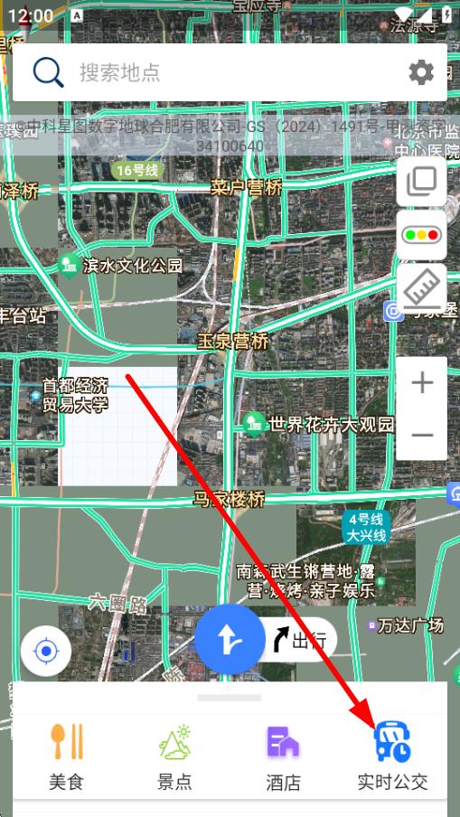1、打開北斗導航應用,在主界面下方點擊實時公交圖標。