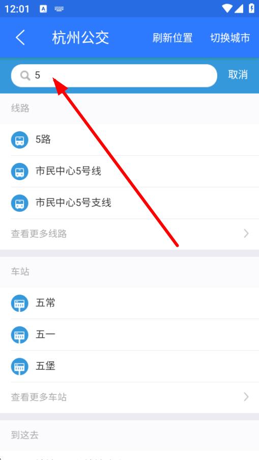 3、在搜索欄中輸入想要查詢的公交路線編號,如5路。
