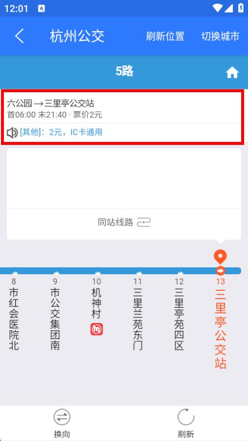 4、點擊搜索結果中的對應公交線路,進入該線路詳情頁,即可查看公交的起始站、終點站、首末班車時間、票價,以及各個站點順序等路線信息。