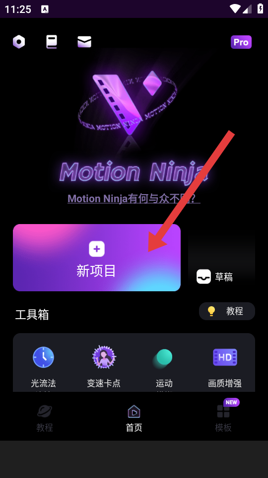 1、打開Motion Ninja APP,點擊新項目,進入項目創(chuàng)建界面。