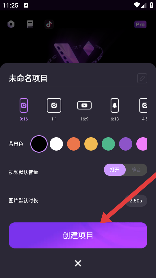 2、在項目創(chuàng)建界面設(shè)置好比例等參數(shù)后,點擊創(chuàng)建項目,進入編輯界面。