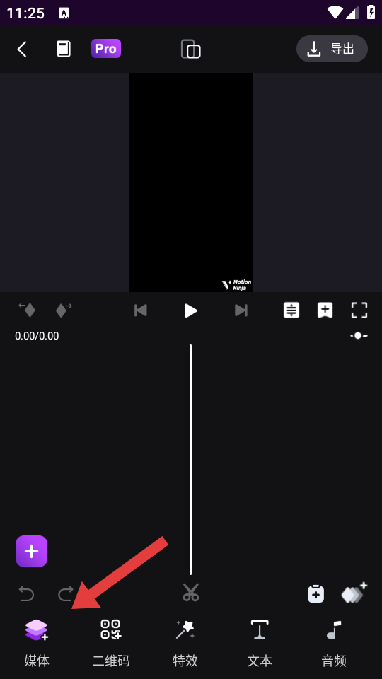 3、在編輯的界面,我們需要點擊媒體,進入素材選擇的界面。