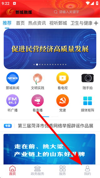 1、打開鄄城融媒app,在首頁點(diǎn)擊我的,進(jìn)入個人的頁面。