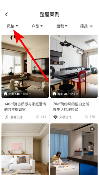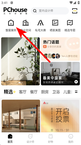 1、在首頁功能區(qū)找到并點擊整屋案例,進入整屋案例專屬頁面。